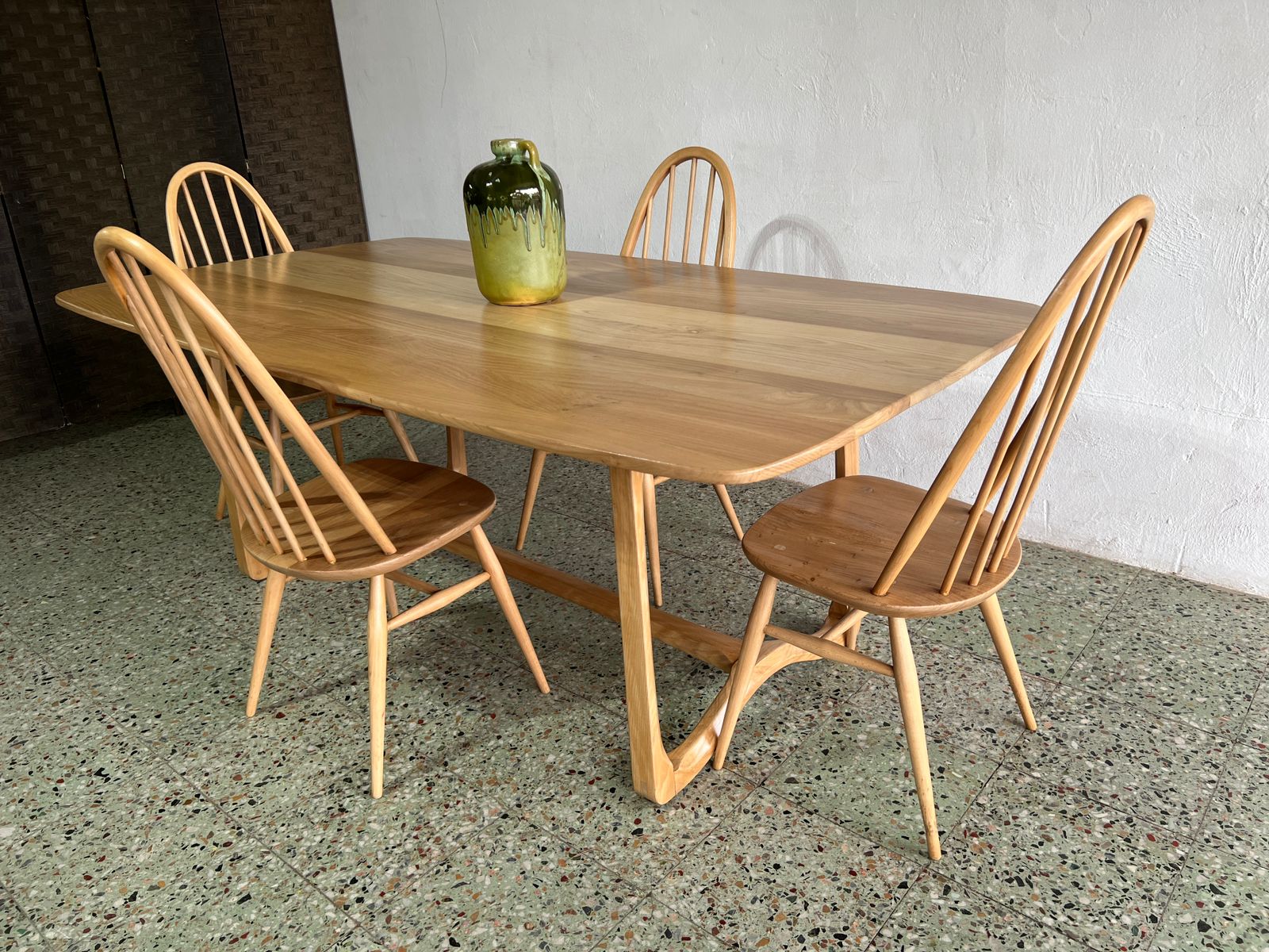 Original Ercol dining table with 4 chairs, showcasing timeless craftsmanship, elegant design, and durable quality for stylish and functional dining spaces.